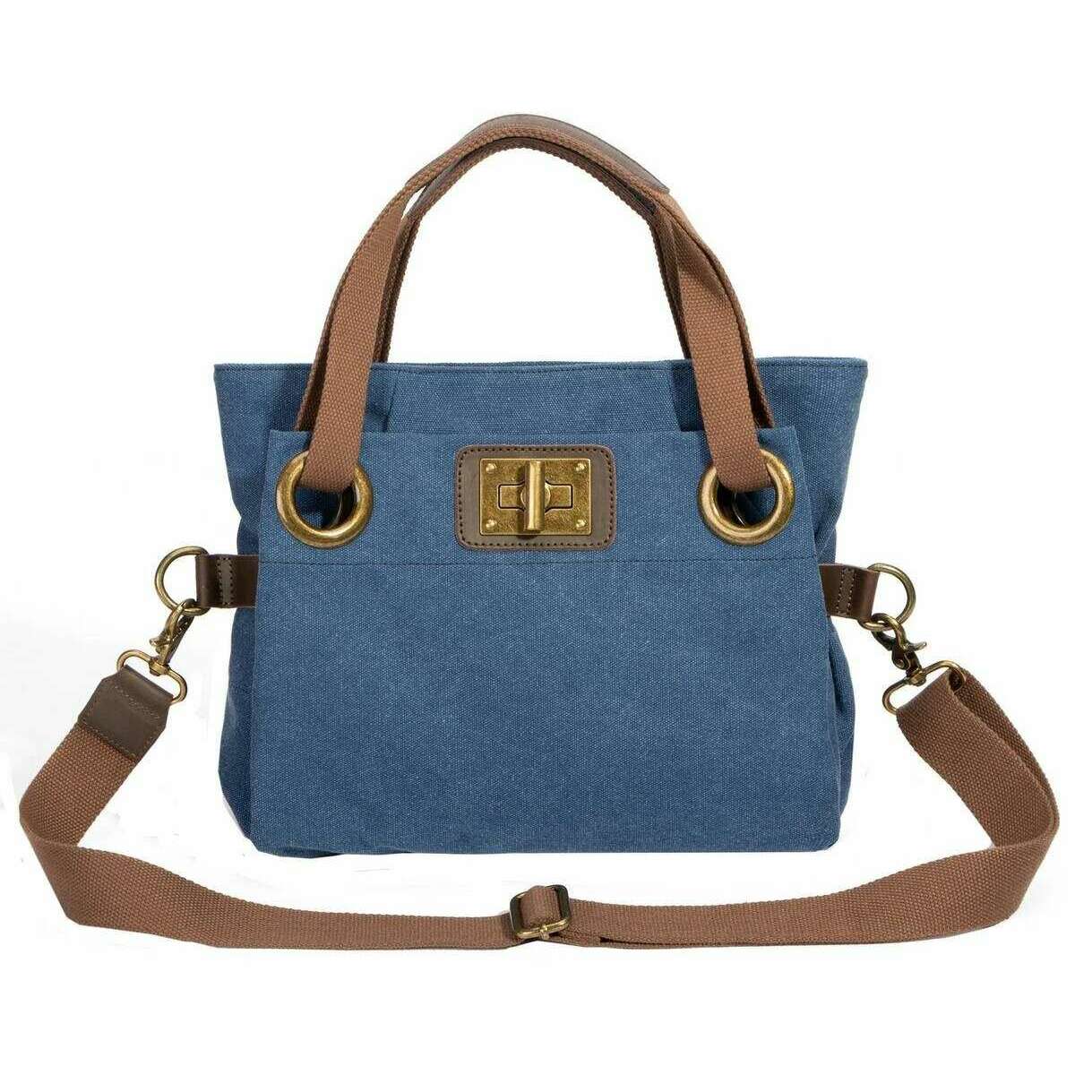 Manufactured from 100% faded cotton canvas and split cowhide leather is this jean blue unisex pont des arts mini cross body bag by the designer ZEDE. It measures 26cm(height) x 25cm(width) x 11cm(depth). All the bags come complete with zede packaging. The ZEDE Pont Des Arts Mini Cross Body Bag - Jean Blue is a sweet feminine everyday bag that can either be worn across the body, on the shoulder or as a handbag with the detachable adjustable strap and two handles. Featuring a front and back exterior pocket and interior pockets allow for great storage and organisation when carrying your essentials. This beautiful and chic design will elevate and complete any outfit, sure to get you compliments. Crafted from faded cotton canvas and cowhide split leather ensures a water-repellent wear.