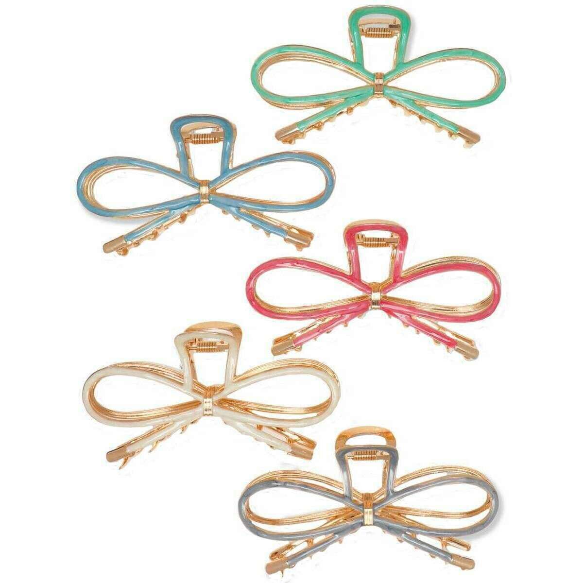 Zelly 5 Assorted Large Enamel Bow Hair Claw Clips - Gold