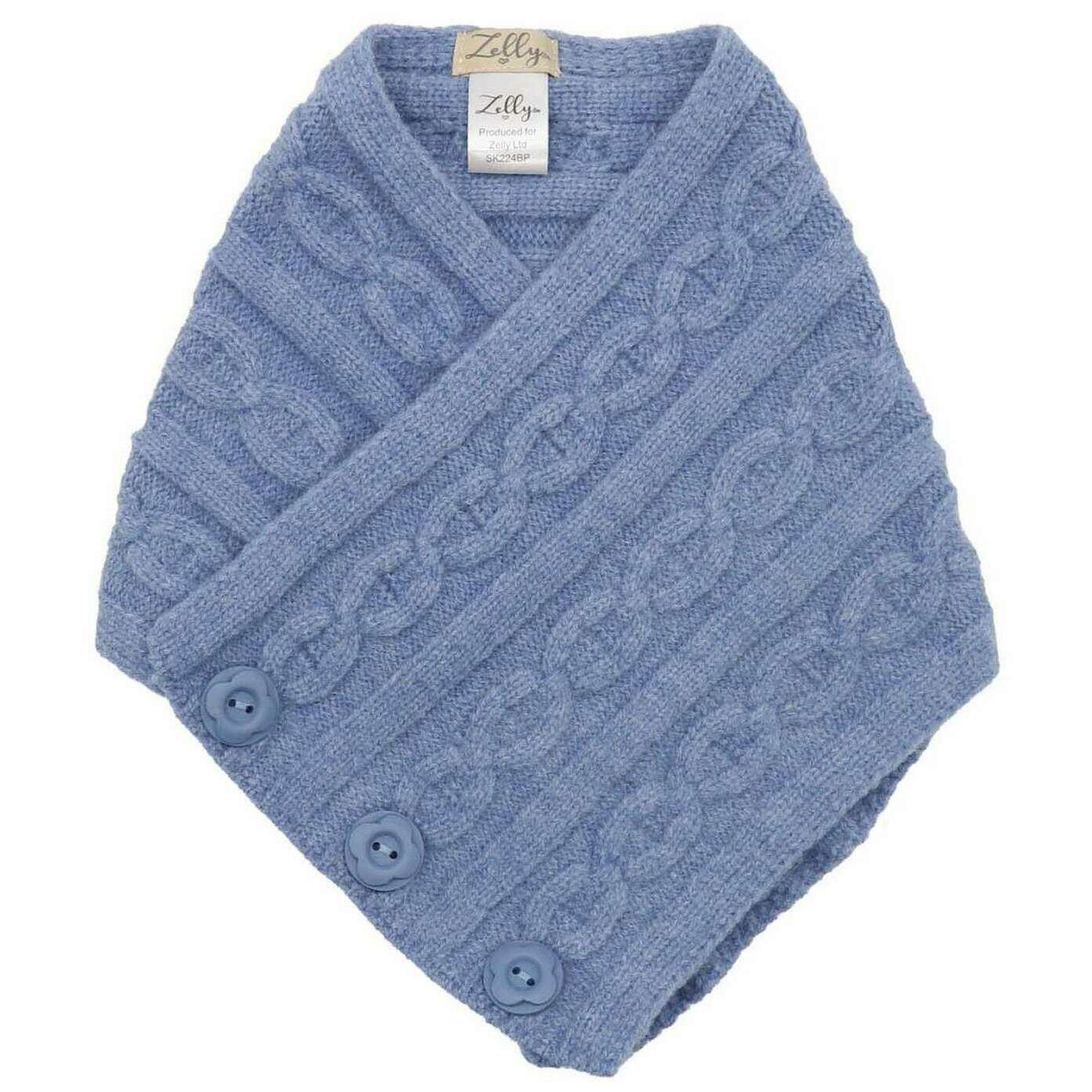 Manufactured from 36% chinlon, 35% acrylic and 29% viscose is this blue women's button tippet by the designer Zelly. It measures 78cm(height) x 80cm(width). It is recommended to machine wash at 30 degrees to keep this scarf in good condition. All the scarves come complete in zelly packaging. The Zelly Button Tippet - Blue is perfect if you don t like the traditional scarf design but are looking for something to keep your neck warm through the colder months. Simplistic and practical, this neck piece ensures warmth and comfort that a scarf offers, without the excess fabric, making it a popular wear as it looks great and feels fabulous. Add this to your attire and you will be the belle in a blizzard.