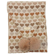This women's heart pom pom scarf has been made from 36% chinlon, 35% acrylic and viscose, featured in a beige colour and is from the brand Zelly. It measures 185cm(height) x 33cm(width). It is recommended to machine wash at 30 degrees to keep this scarf in good condition. All the scarves come complete in zelly packaging. The Zelly Heart Pom Pom Scarf - Beige has a fun oversized pom pom on each end, giving it a contemporary touch. The warm and cosy material will keep you wrapped up in the cold weather and designed in-house, it is sure to keep you looking stylish, paired with your favourite winter wardrobe attire.