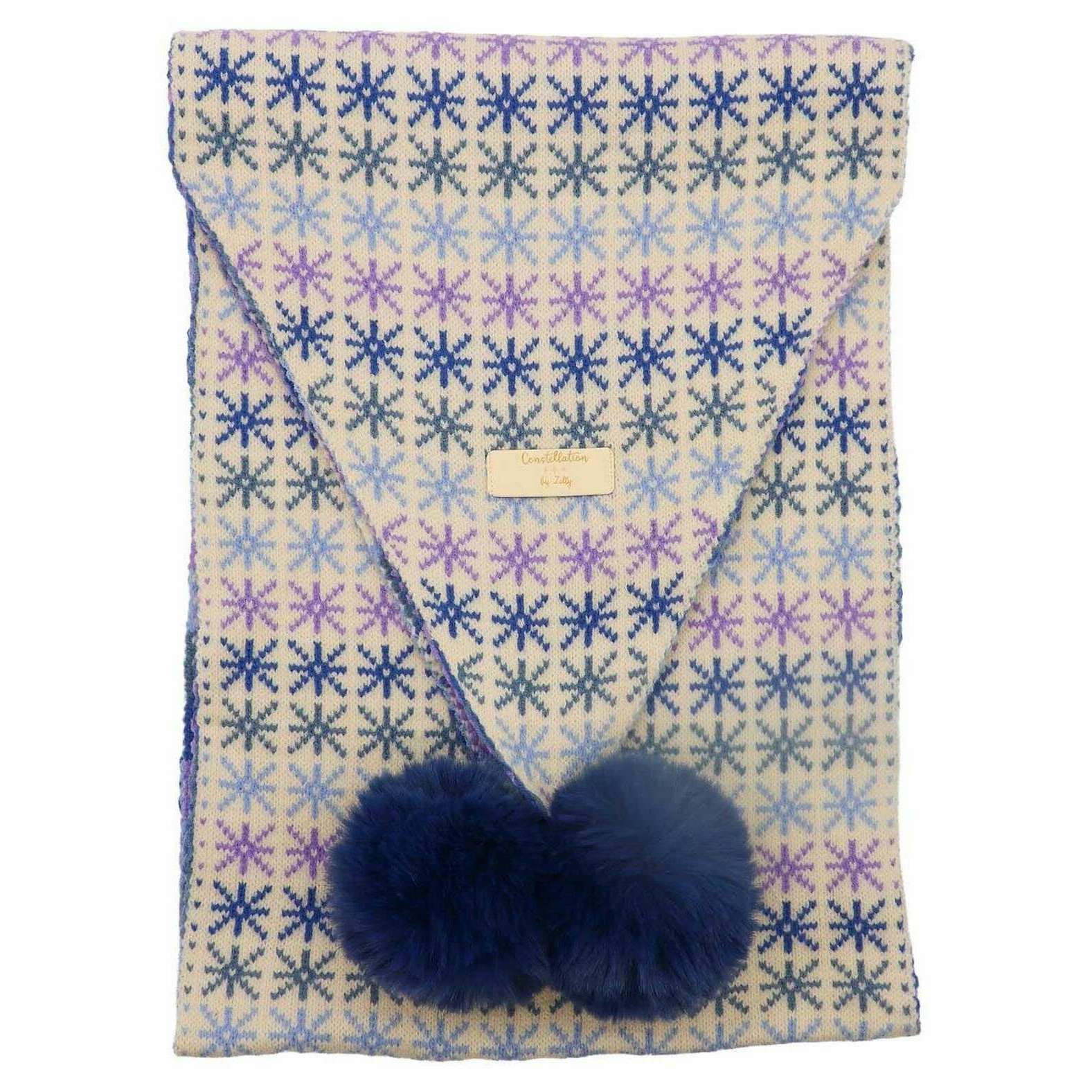 Zelly Stars Pom Pom Scarf - Blue